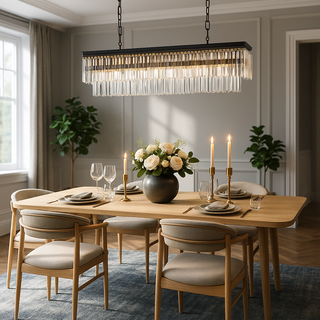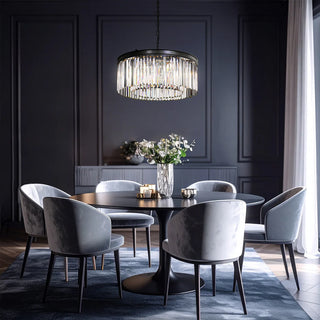 Explore timeless round silhouettes, dramatic rectangular designs, and multi-tier styles featuring faceted glass crystal accents and quality finishes like antique black and chrome. Our chandelier collection includes options ideal for voids, foyers, high ceilings, and formal entertaining areas, ensuring your lighting is as impactful as your interior design.