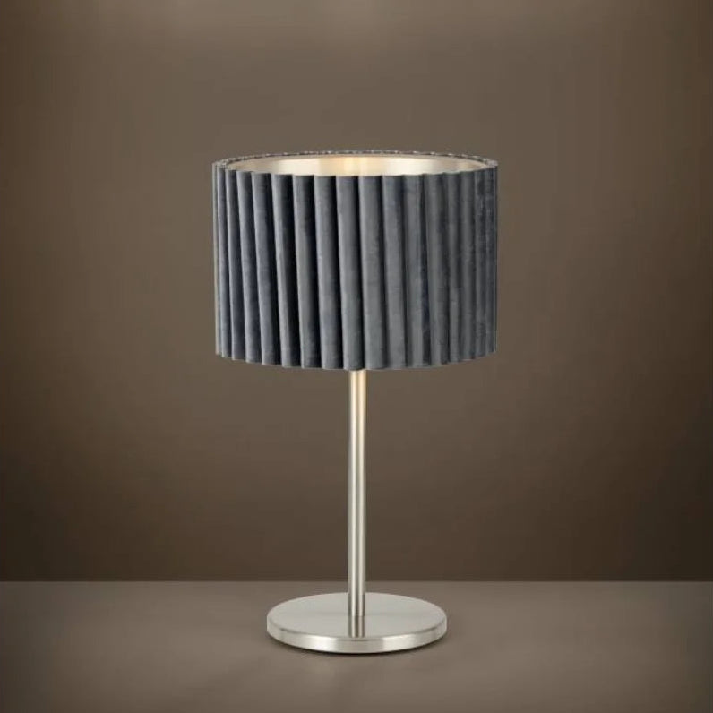 The Tamaresco Table Lamp from Eglo brings refined elegance and soft luxury to any interior. Featuring a beautifully pleated grey velvet shade paired with sleek satin nickel metalware, this table lamp delivers a sophisticated statement while providing warm, ambient illumination.