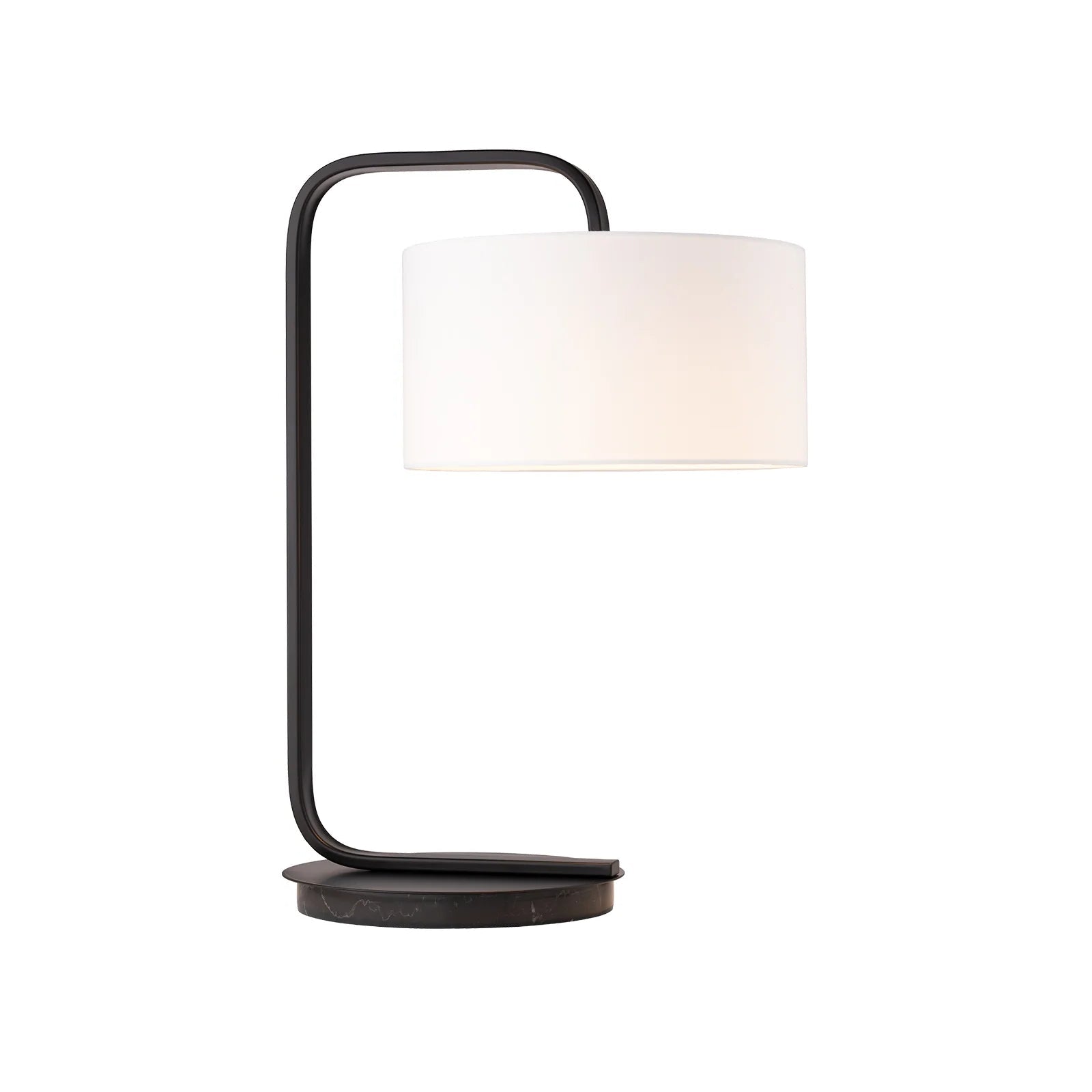 The Mayfield Cordell Table Lamp blends sculptural simplicity with refined mid-century styling. Featuring a cantilevered frame anchored to a solid marble base, Cordell supports a crisp white linen shade that appears to float effortlessly.