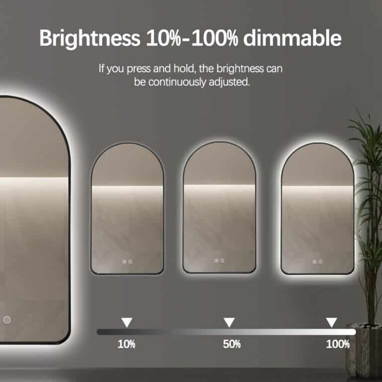Elevate your space with the 130x70cm Arched Black Bevel Frame Backlit LED Mirror, blending bold modern design with everyday functionality. Its sleek black frame and arched silhouette create a striking statement, while dimmable LEDs with adjustable colour temperatures ensure perfect lighting for any mood. Featuring anti-fog technology and an intuitive touch control panel, this mirror is ideal for bathrooms, bedrooms, or dressing areas, catering to modern, minimalist, and industrial interiors with effortless style and practicality.