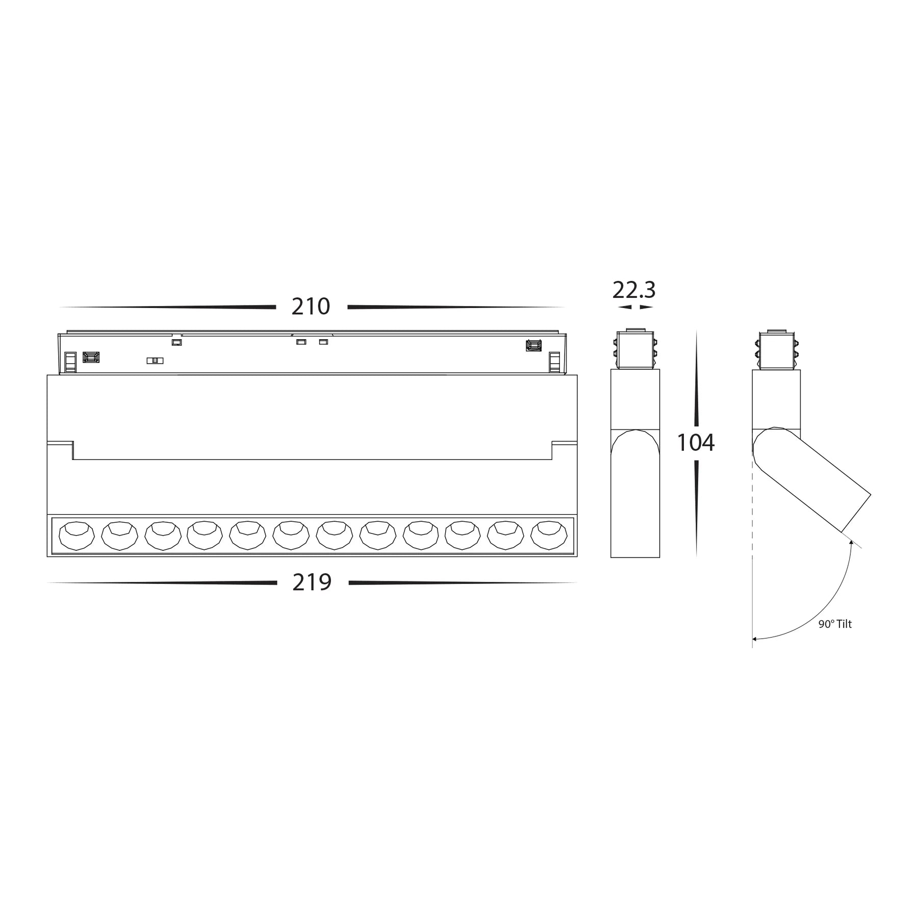 Constructed from precision-finished aluminium in a black finish, this linear magnetic track light features a compact, low-profile design with 90° tilt adjustment, allowing accurate directional lighting for retail displays, gallery walls, hospitality environments, and architectural feature lighting.