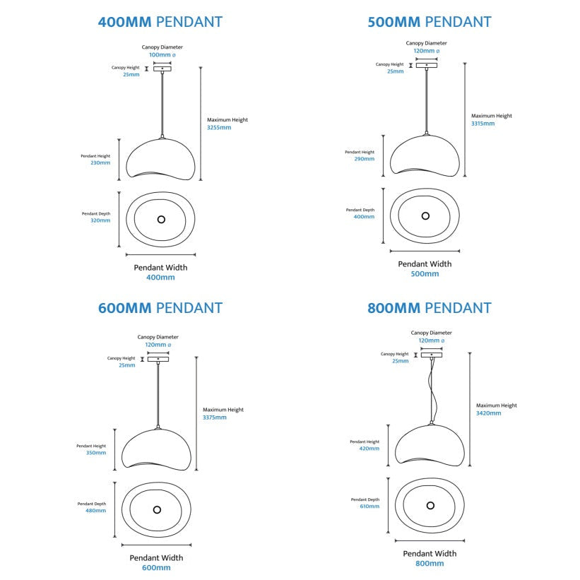 Available in four sizes — 400mm, 500mm, 600mm and 800mm — allowing you to install a single statement piece or create a layered cluster for voids and stairwells.