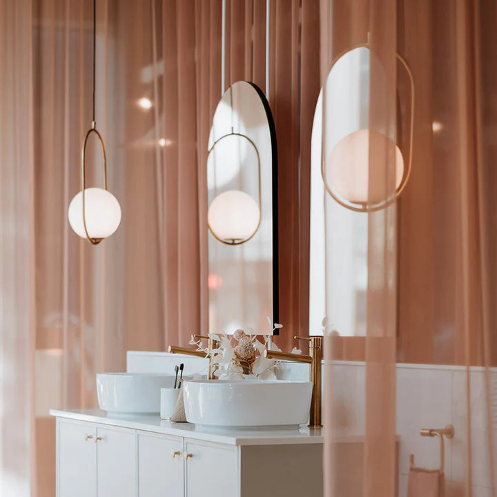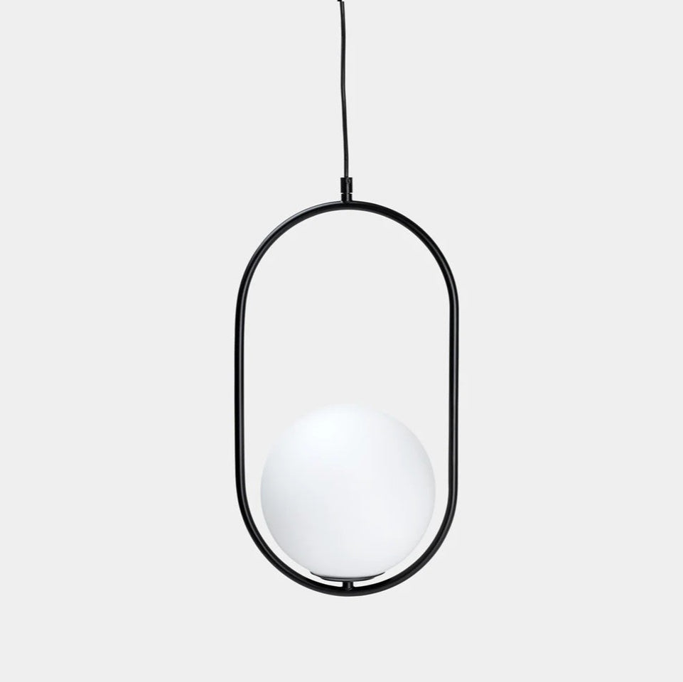 The Evor Small Pendant embodies modern elegance with its minimalist oval frame and softly diffused glass sphere.