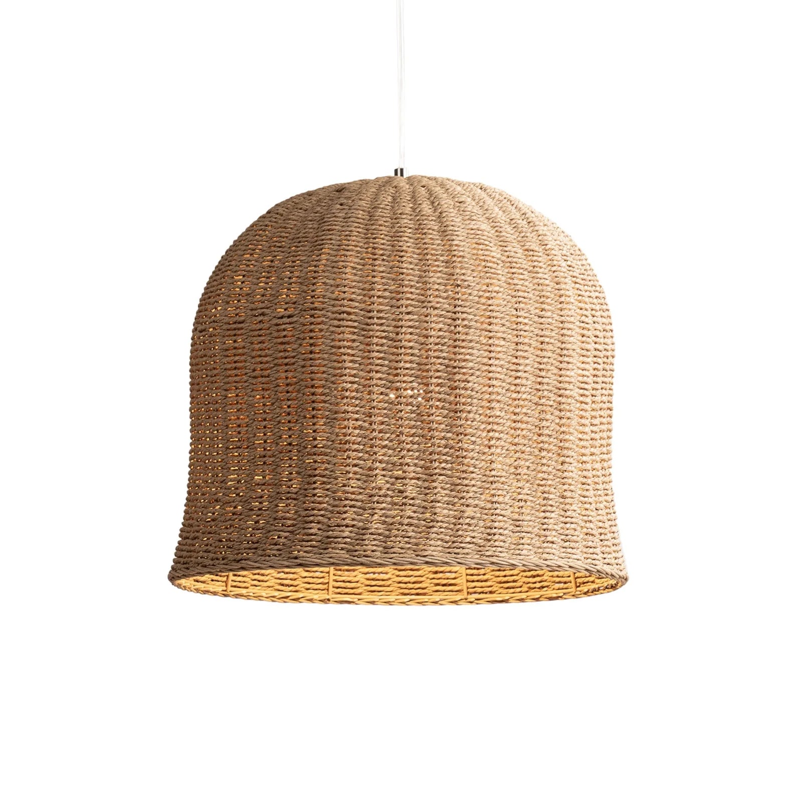 The richly textured basket-weave creates a warm, inviting glow when illuminated. Each shade is woven by hand, ensuring organic variation and a unique finish. Kiawah is supplied with a 2.8m white cloth cord suspension and a Satin White ceiling cup, making it ideal for high ceilings or styled groupings over dining tables, kitchen islands or bedside areas.