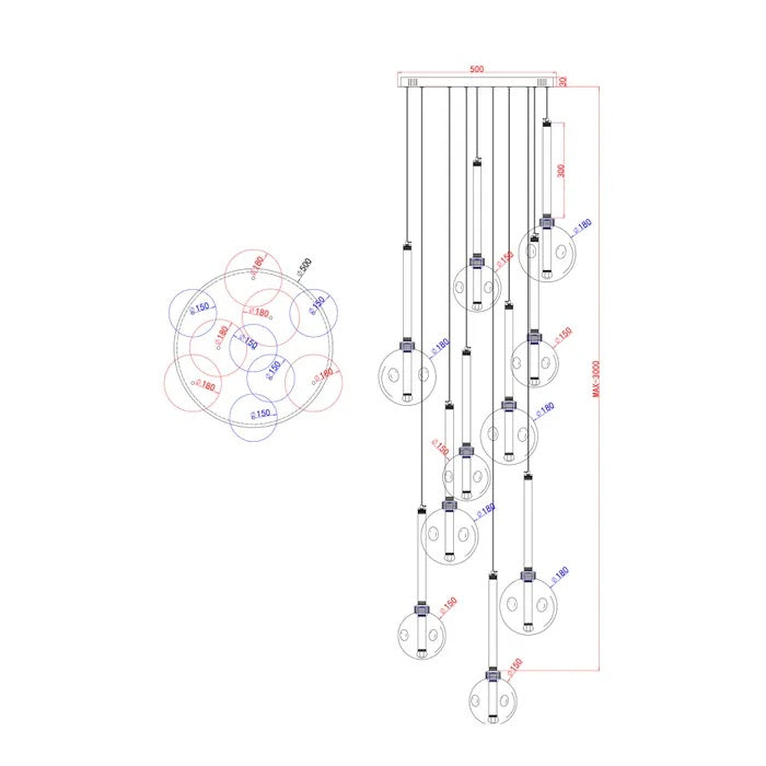 Perfectly scaled for stairwells, dining rooms, or double-height spaces, the Meteor 10 Light Pendant brings sculptural presence and elegant illumination.