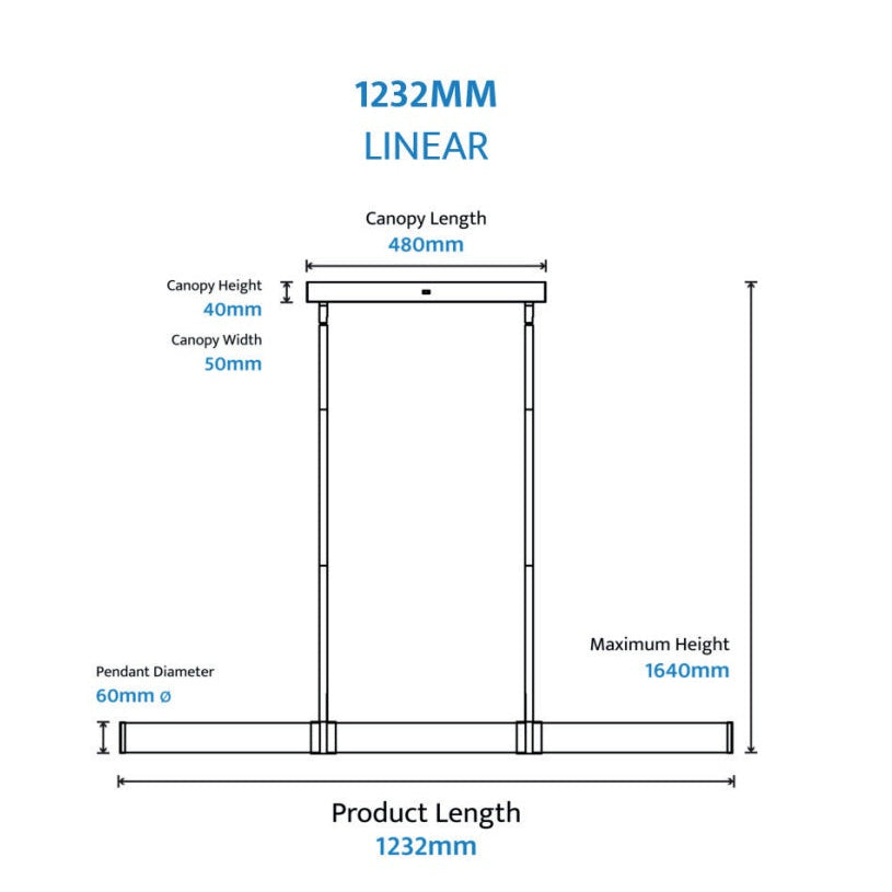 Dimensions: Length 1232mm, Pendant Diameter 60mm