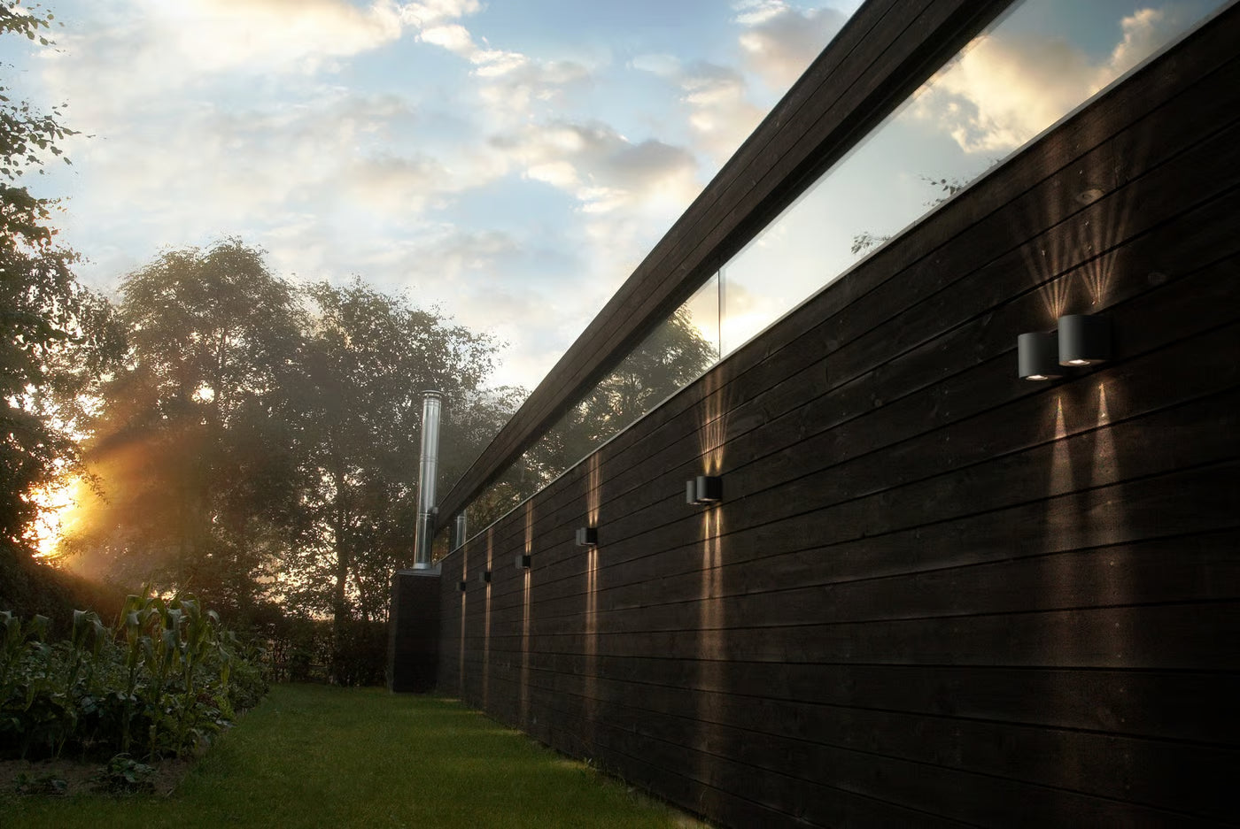 The Canto 2 Wall Light is a minimalist architectural fixture that combines sculptural form with functional outdoor lighting. Designed by Danish design studio Bønnelycke MDD, this compact wall light projects illumination both upward and downward to create striking decorative light patterns on surrounding surfaces.