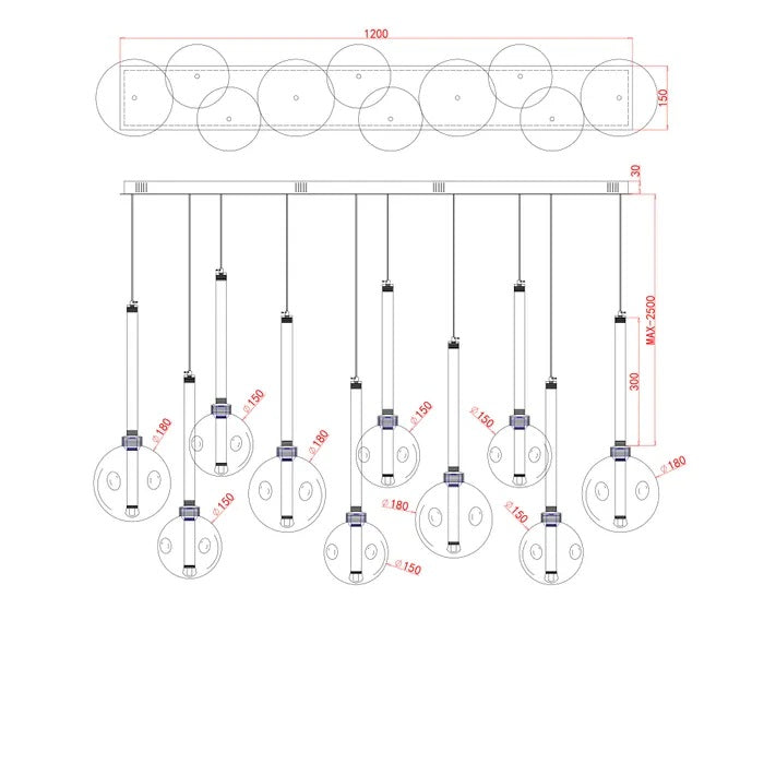 Glass Sizes: 5 × Ø150mm + 5 × Ø180mm